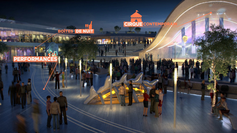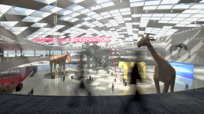 ofreciendo una mezcla de instalaciones comerciales, culturales y de ocio, paris '' ciudad europa 'se concibe como un proyecto híbrido que combina la forma urbana con un paisaje expansivo. con el fin de explicar el esquema de 800.000 metros cuadrados, creativo agencia estrabismo / ópera se unió a la el arquitecto del proyecto Bjarke Ingels, que lleva a los espectadores a través del diseño con la ayuda de una pantalla verde y 3D photoreal y gráficos en 2D. ver cobertura previa de designboom del desarrollo, que se espera que abra en 2020, aquí .